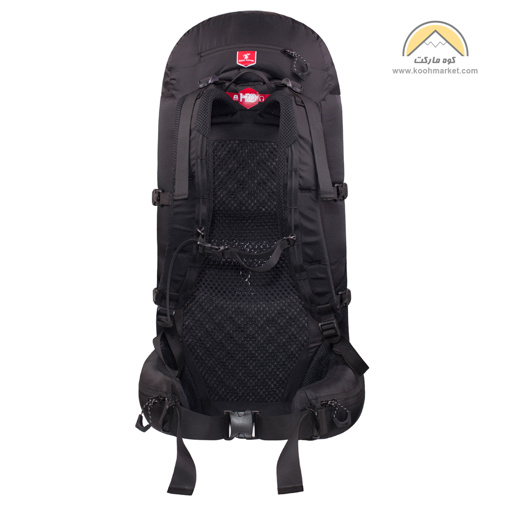 - بندهای اتصال باتوم و تبر یخ : دو عدد بند استوپر دار در طرفین کوله وجود دارد که می توان به هر طرف یک عدد باتوم متصل کرد .