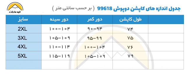 توجه : درصورتی که دور سینه و طول کاپشن برای شما مثلا در سایز L قرار گرفت ولی دور کمر در سایز XL بود نیازی به انتخاب سایز XL نیست زیرا معیار اصلی همان دور سینه می باشد .