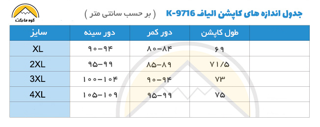 توجه : درصورتی که دور سینه و طول کاپشن برای شما مثلا در سایز L قرار گرفت ولی دور کمر در سایز XL بود نیازی به انتخاب سایز XL نیست زیرا معیار اصلی همان دور سینه می باشد .