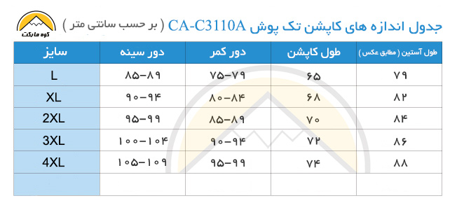 توجه : درصورتی که دور سینه و طول کاپشن برای شما مثلا در سایز L قرار گرفت ولی دور کمر در سایز XL بود نیازی به انتخاب سایز XL نیست زیرا معیار اصلی همان دور سینه می باشد .