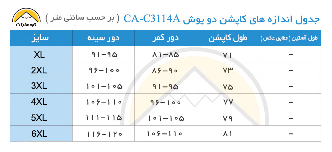 توجه : درصورتی که دور سینه و طول کاپشن برای شما مثلا در سایز L قرار گرفت ولی دور کمر در سایز XL بود نیازی به انتخاب سایز XL نیست زیرا معیار اصلی همان دور سینه می باشد .
