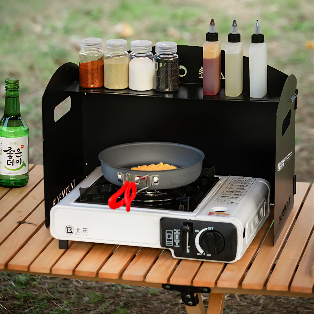 - ابعاد بزرگ با پوشش کامل : بزرگ بودن ابعاد در این مدل دو مزیت دارد , اول اینکه سطح بیشتری را پوشش می دهد و علاوه بر اجاق , می توان ادویه ها و سایر موادی که وزش باد باعث پراکنده شدن آن ها می شود را هم داخل آن گذاشت . دوم اینکه هر نوع اجاق کمپینگ با هر اندازه و ارتفاعی را تحت پوشش قرار می دهد .