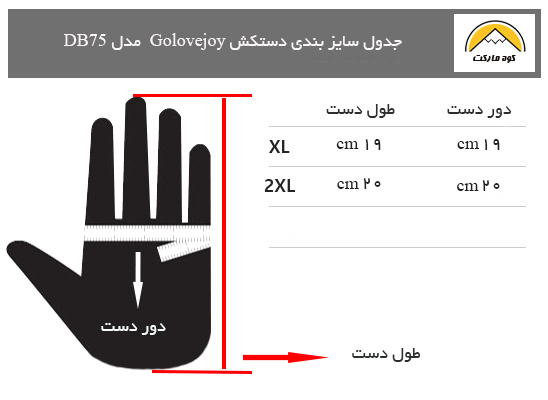 جهت انتخاب سایز ابتدا مطابق تصویر زیر دور دست و طول دست خود را با یک متر اندازه بگیرید و از روی اندازه های جدول سایز خود را تعیین کنید .