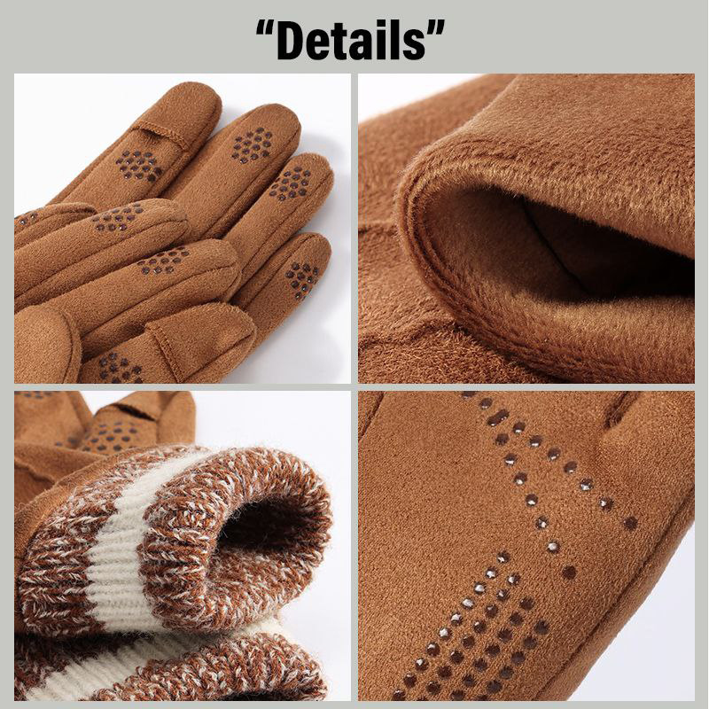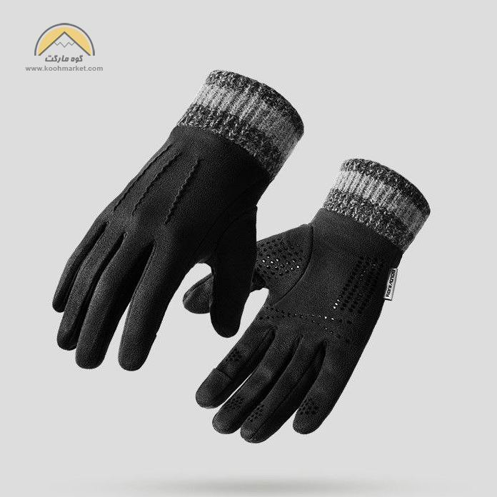 پارچه مرغوب : جنس رویه این دستکش نوعی جیر مرغوب است و داخل آن یک لایه پارچه مخملی نرم و لطیف کار شده است که به هنگام پوشیدن , حس خوبی را منتقل می کند . قسمت مچ دست نیز یک لایه ضخیم بافت کار شده است که هم استایل آن را جذاب تر کرده و هم مانع نفوذ باد و هوای سرد از این قسمت می شود .