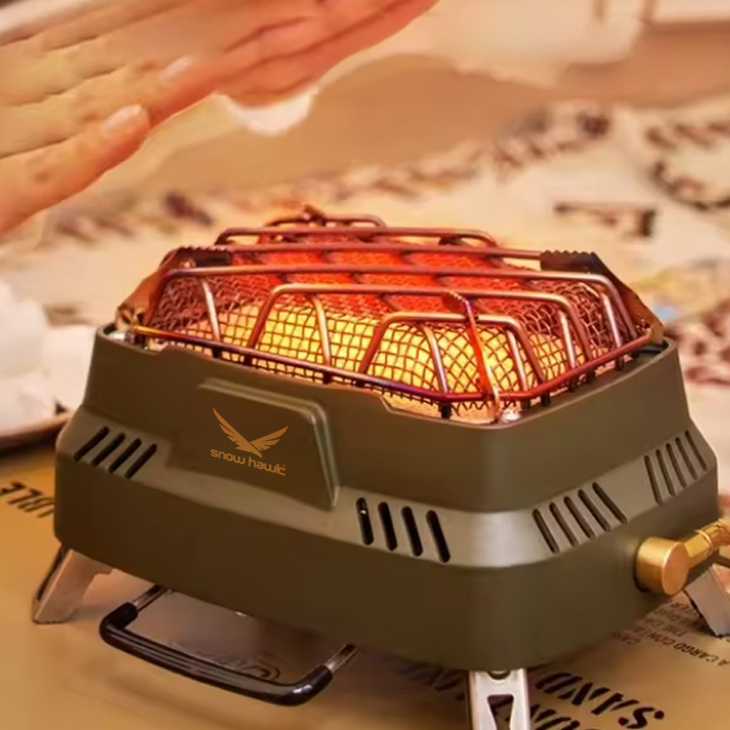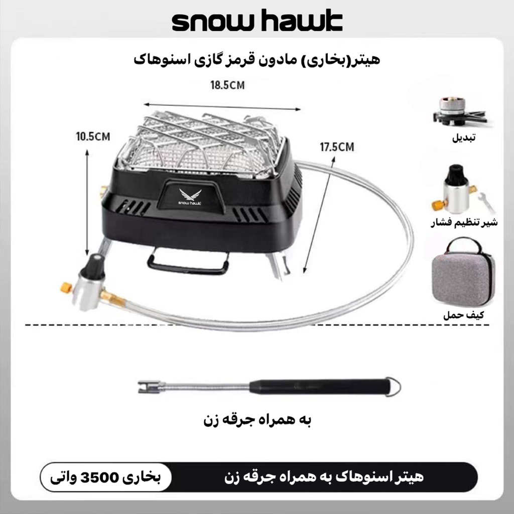 برنامه های کمپینگ و شب مانی در فصول سرد نیازمند تجهیزات تخصصی و کاربردی است که بدون وجود این تجهیزات شرایط تا حدودی سخت و غیرقابل تحمل می گردد ، با توجه به سردی هوا در این فصول نیاز به داشتن یک منبع گرمایی مطمئن بیش از همه لازم و ضروری است ، از طرفی آشپزی و پخت و پز که همواره یکی از لذت بخش ترین قسمت های یک برنامه کمپینگ برای ما ایرانیان است وجود یک اجاق سفری بیش از همیشه مورد نیاز می باشد . از این رو کمپانی نام آشنای اسنوهاوک (Snow Hawk) با تولید یک محصول خلاقانه و به شدت کاربردی این دو نیاز مهم و ضروی طبیعت گردان و آفرودر ها را که در بالا به آن اشاره نمودیم برطرف کرده است . هیتر یا بخاری گازی SN-C6195 اسنوهاوک در حقیقت یک هیتر بسیار قدرتمند و در عین حال بسیار سبک و کم حجم است که قادر است توانی فوق العاده در حدود 3500 وات را تولید نماید ، اما این محصول زمانی جذابیتش دوچندان می شود که به سبب طراحی خلاقانه اش می توان از آن به عنوان یک اجاق گازی بسیار قدرتمند جهت پخت و پز در طبیعت نیز استفاده نمود . برخی از ویژگی های بخاری گازی دوکاره اسنوهاوک مدل SN-C6195 به شرح زیر می باشد :