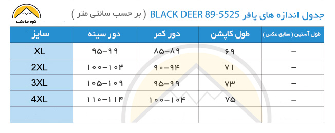 توجه : درصورتی که دور سینه و طول کاپشن برای شما مثلا در سایز L قرار گرفت ولی دور کمر در سایز XL بود نیازی به انتخاب سایز XL نیست زیرا معیار اصلی همان دور سینه می باشد .