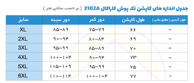 توجه : اعداد این جدول با در نظر گرفتن یک بلوز پلار از زیر کاپشن نوشته شده اند . بنابراین نیازی به انتخاب یک سایز بزرگ تر نمی باشد .