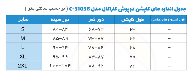 توجه : درصورتی که دور سینه و طول کاپشن برای شما مثلا در سایز L قرار گرفت ولی دور کمر در سایز XL بود نیازی به انتخاب سایز XL نیست زیرا معیار اصلی همان دور سینه می باشد .