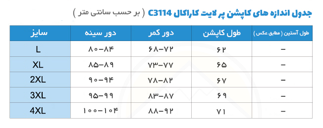 توجه : درصورتی که دور سینه و طول کاپشن برای شما مثلا در سایز L قرار گرفت ولی دور کمر در سایز XL بود نیازی به انتخاب سایز XL نیست زیرا معیار اصلی همان دور سینه می باشد .