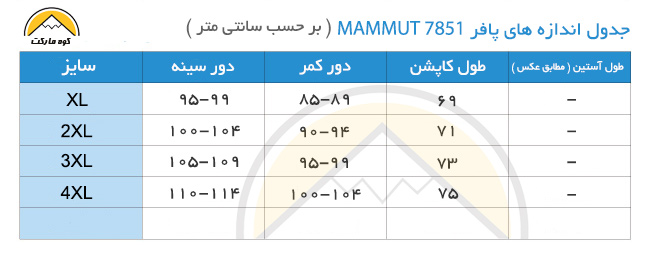 توجه : درصورتی که دور سینه و طول کاپشن برای شما مثلا در سایز L قرار گرفت ولی دور کمر در سایز XL بود نیازی به انتخاب سایز XL نیست زیرا معیار اصلی همان دور سینه می باشد .