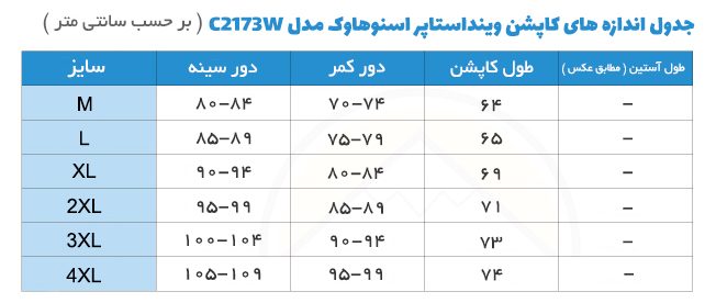 توجه : درصورتی که دور سینه و طول کاپشن برای شما مثلا در سایز L قرار گرفت ولی دور کمر در سایز XL بود نیازی به انتخاب سایز XL نیست زیرا معیار اصلی همان دور سینه می باشد .