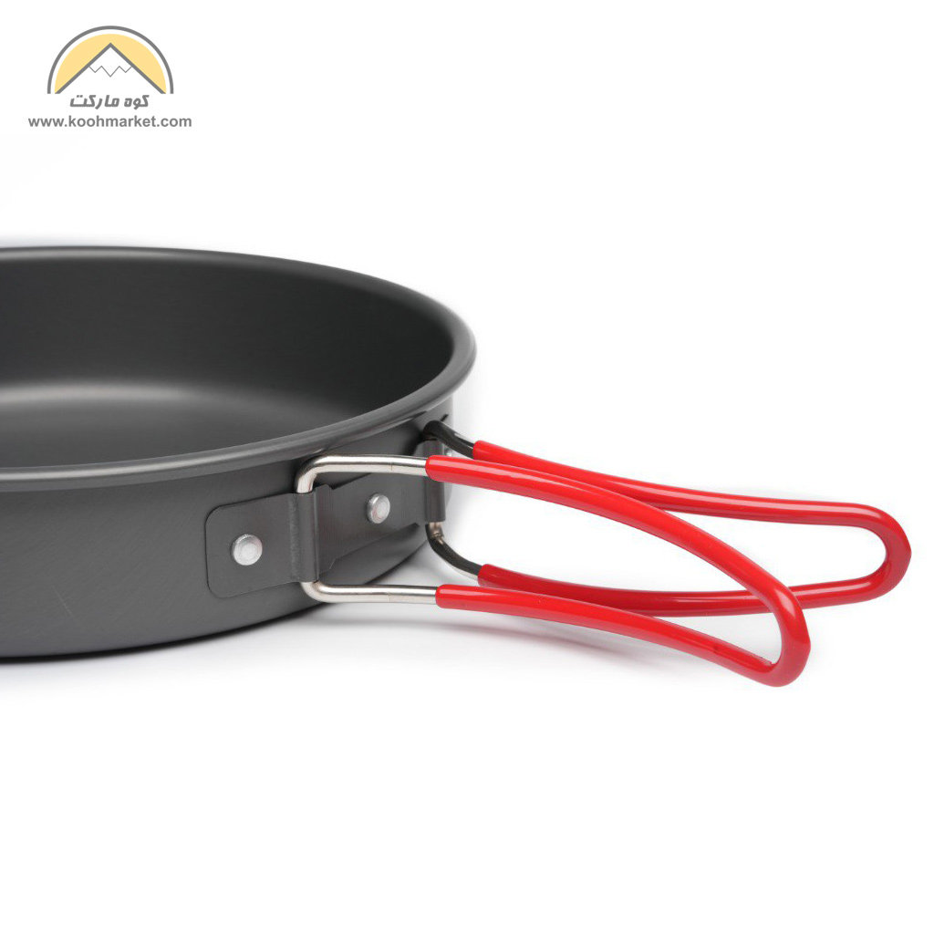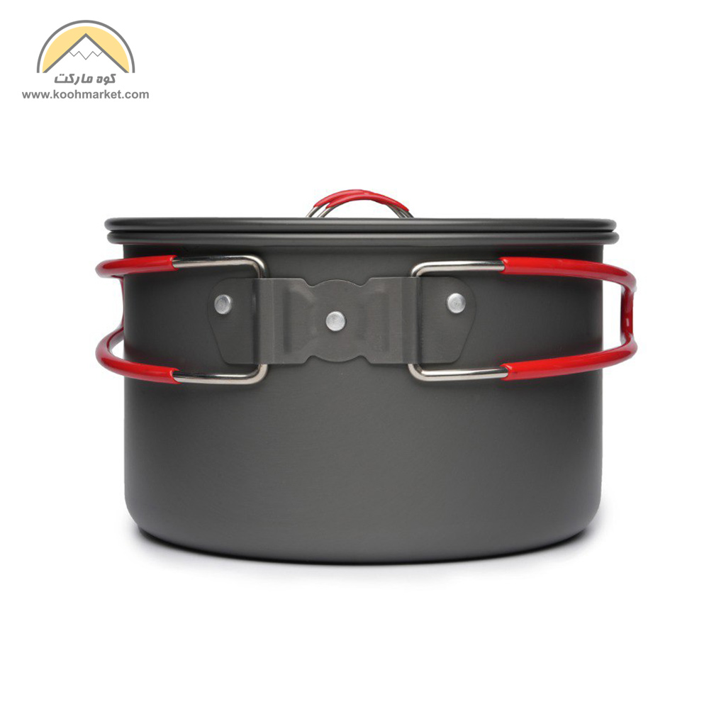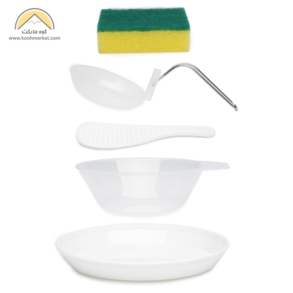 | اقلام موجود در این ست | یک عدد قابلمه / درب قابلمه / یک عدد ماهیتابه / یک عدد کتری / سه عدد کاسه / سه عدد بشقاب / یک عدد ظرف سس (قابل استفاده به عنوان ملاقه) / یک عدد کفگیر / یک عدد اسکاچ / کاور توری مخصوص حمل |
