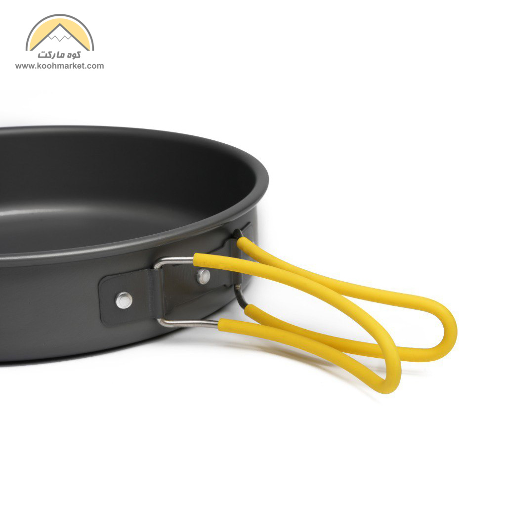 | اقلام موجود در این ست | یک عدد قابلمه / درب قابلمه / یک عدد ماهیتابه / یک عدد کتری / سه عدد کاسه / سه عدد بشقاب / یک عدد ظرف سس (قابل استفاده به عنوان ملاقه) / یک عدد کفگیر / یک عدد اسکاچ / کاور توری مخصوص حمل |