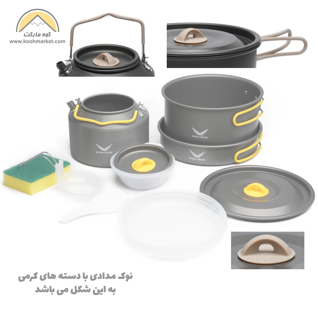 کمپانی Snow Hawk ست ظروف مدل SN-T111 را برای کسانی که اهل مسافرت و کمپینگ های زیاد می باشند طراحی ، تولید و روانه بازار نموده است . این مجموعه ظروف که برای 3 نفر مناسب می باشد کلیه نیازهای شما را برای یک پخت و پز در طبیعت و میل کردن آن در کنار دوستان و آشنایان را فراهم می نماید . طراحی خلاقانه این ست به گونه ای است که تمام ظروف آن تنها فضایی به ابعاد 20.5 * 14 سانتی متر را اشغال می کنند و به سبب به کارگیری مواد اولیه با کیفیت و مخصوص وزن این ست تنها 880 گرم می باشد .