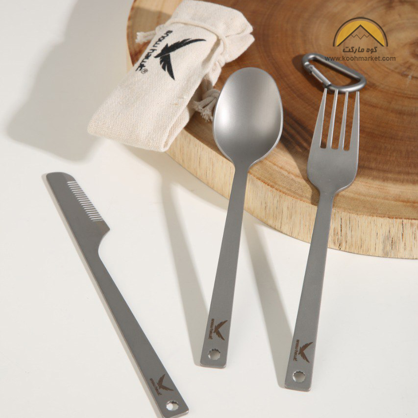 - دارای کاور مخصوص حمل : یک عدد کاور پارچه ای کاملا مینیمال نیز برای این ست طراحی شده که پس از استفاده می توان قاشق چنگال را داخل آن قرار داد .